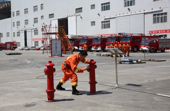 儀式首先由高新區管委會黨工委副書記韓金芳發表致辭,市地震局局長馬衛紅宣讀了《關于組建聊城市魯西集團地震應急救援隊的方案》。隨后任市長和集團公司董事長為聊城市魯西集團地震救援隊揭牌,任市長向應急救援隊隊長授旗,集團公司副總經理張金林介紹了魯西集團防震減災工作情況。期間,領導一行還觀摩了應急救援隊隊員表演的綜合體能、單兵破拆救人、帶壓快速堵漏和渦噴消防車出水演練,參觀了應急救援裝備和接警平臺等。