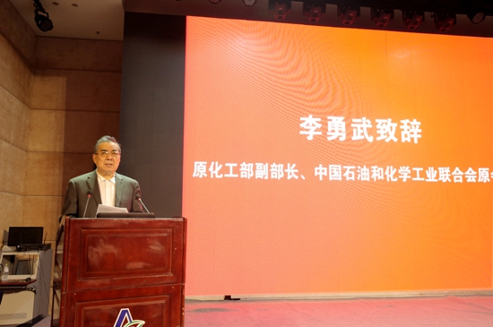 圖為原化工部副部長、中國石油和化學工業聯合會第三屆理事會會長李勇武向大會致辭。