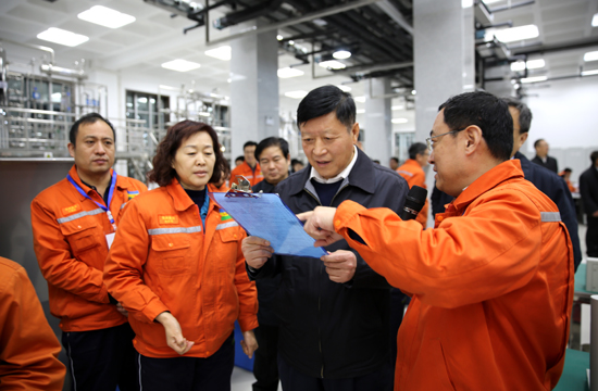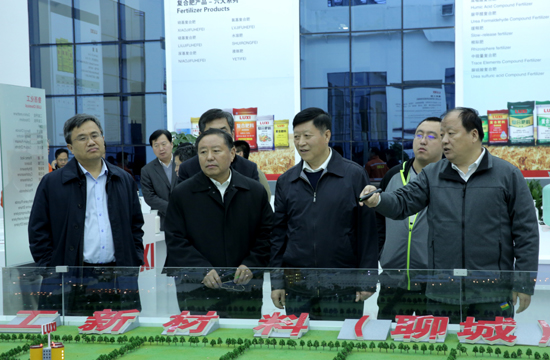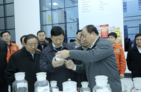 集團(tuán)董事長張金成在產(chǎn)品展示中心重點向領(lǐng)導(dǎo)介紹了園區(qū)化工新材料產(chǎn)品的生產(chǎn)情況、制造與工程板塊集研發(fā)設(shè)計、制造安裝和運(yùn)行管理與一體的優(yōu)勢以及園區(qū)的整體建設(shè)和未來規(guī)劃情況。