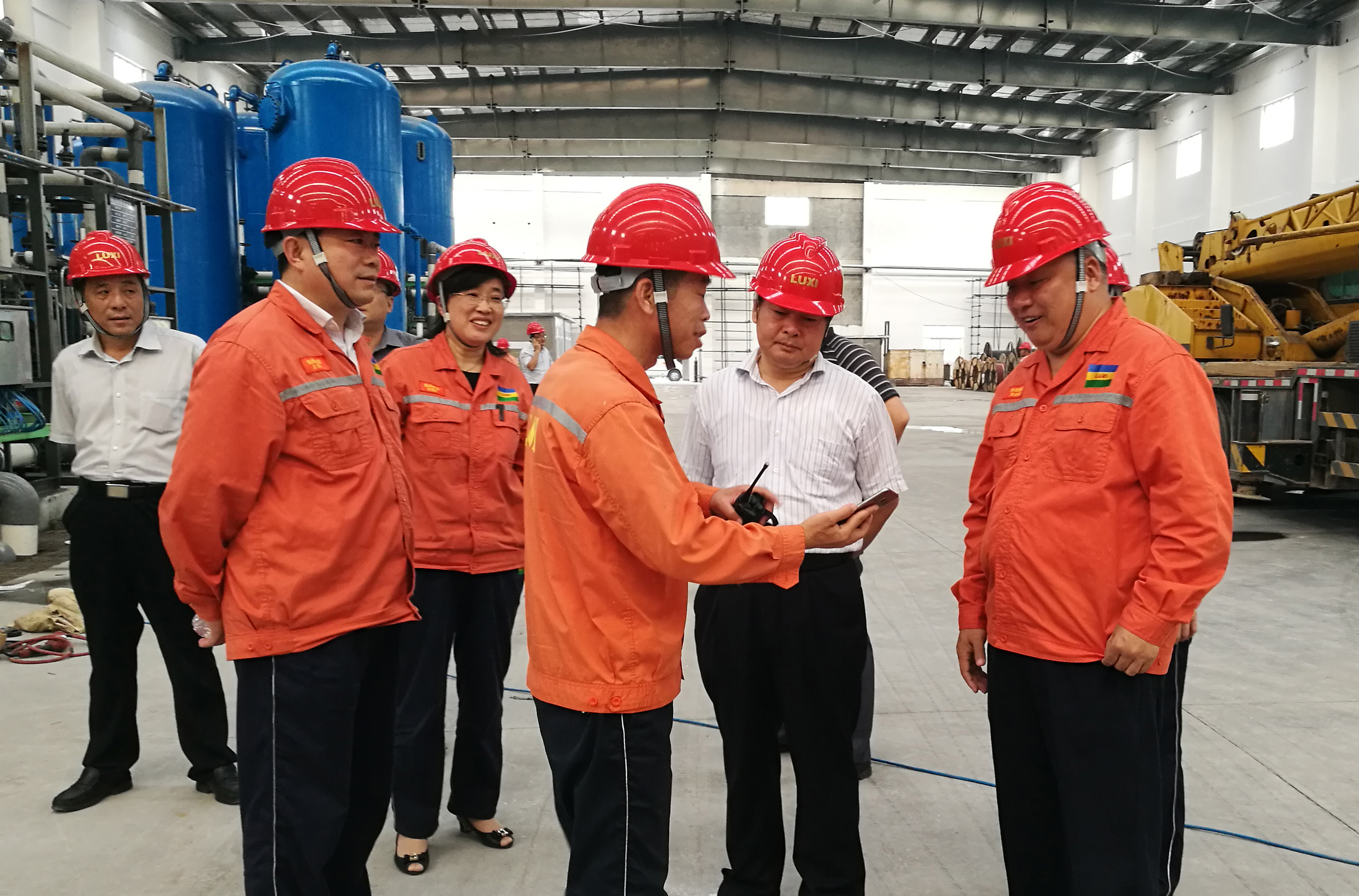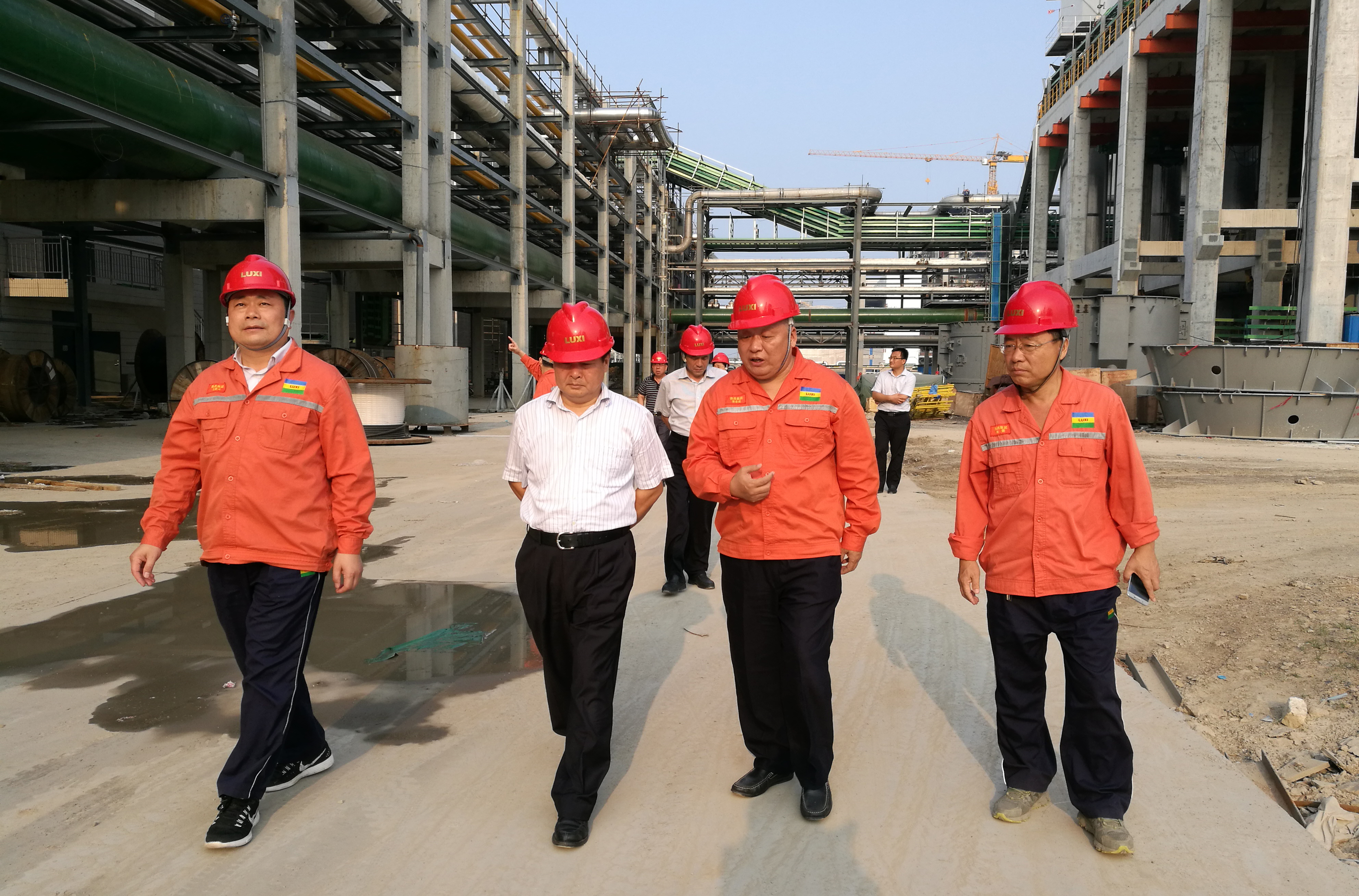 隨后,領導一行深入退城進園一體化項目的每一個施工現場進行了實地參觀調研,董事長向洪市長詳細介紹了各項目的建設進度、主體設備安裝情況和生產工藝流程的特點與優勢,表示魯西集團目前投資建設的項目無論是在工藝設備先進性方面,還是在安全、環保和節能方面均處于領先水平,特別是廢水零排放裝置已成功析出鹽成分,完全達到了循環再利用的標準要求。另外,洪市長還詳細詢問了各項目主要負責人的專業知識掌握情況,以及部分化工新材料產品的市場行情和價格,要求園區進一步提升化工集中度和職業化、專業化進程,鼓勵集團積極申報高新技術企業,爭取更多的項目建設資源、吸引更多的優秀人才聚集。