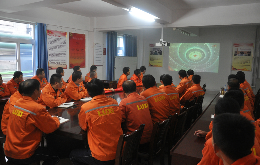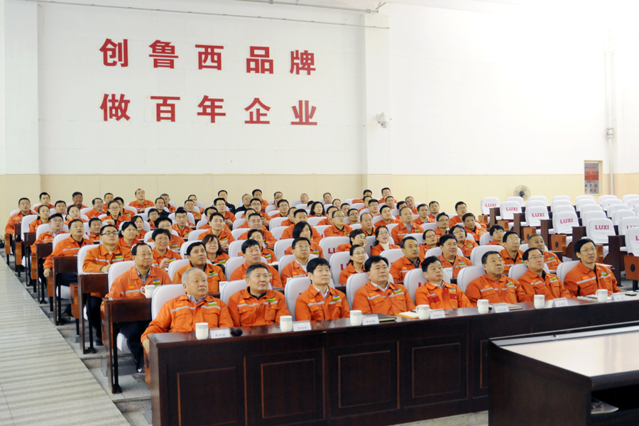 圖為魯西集團黨委組織各單位黨員干部觀看現場。