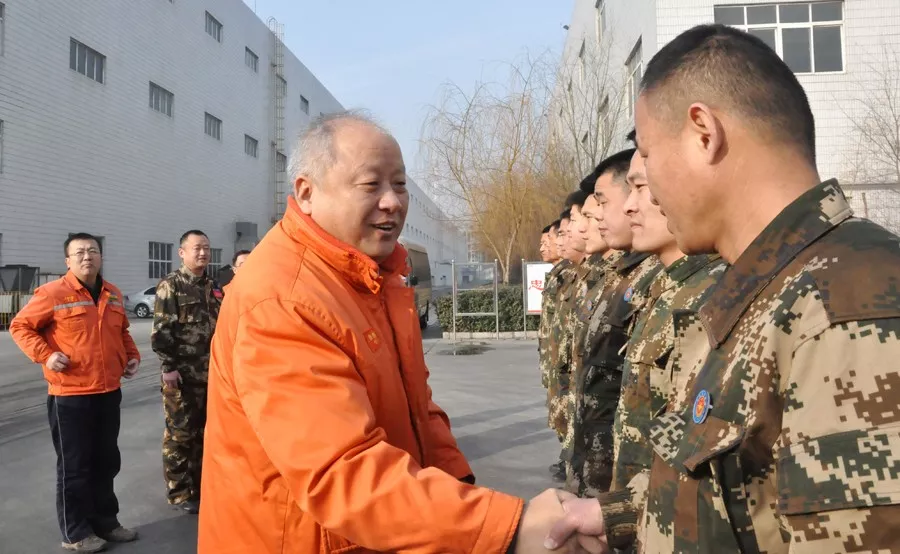 在保衛(wèi)執(zhí)勤門崗,董事長關(guān)切的詢問執(zhí)勤人員冷不冷,并表示越是過節(jié)大家越辛苦,越要全力以赴維護(hù)好園區(qū)的一方平安。