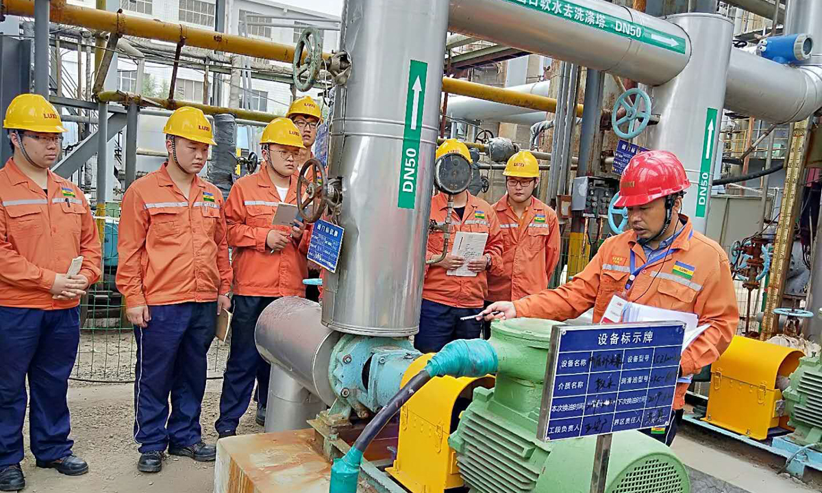 走進循環洗滌泵實訓區內,看到現場一位老技術工人正在耐心給新進員工進行崗位技能培訓。現場隨機采訪了一名新員工,他說道:我們是一批魯西新進員工,剛結束室內實訓基地培訓任務,現正在室外實訓基地循環洗滌泵區進行離心泵的開停車操作技能實訓。經與現場授課李師傅溝通,他們正對新員工進行各類泵操作培訓和考核。室外實訓基地依托真實化工生產裝置工藝流程;根據園區各生產裝置普遍具有的設備設施,涵蓋10種類型泵,多種類型風機設備;可進行設備檢維修、管線打開、登高、動火、受限和吊裝等高危實訓;根據國家標準及管理條例現場制定了各類設備操作規范和操作評分標準展板,使新員工能夠零距離接觸化工企業、能夠快速認識和了解企業生產特點。
