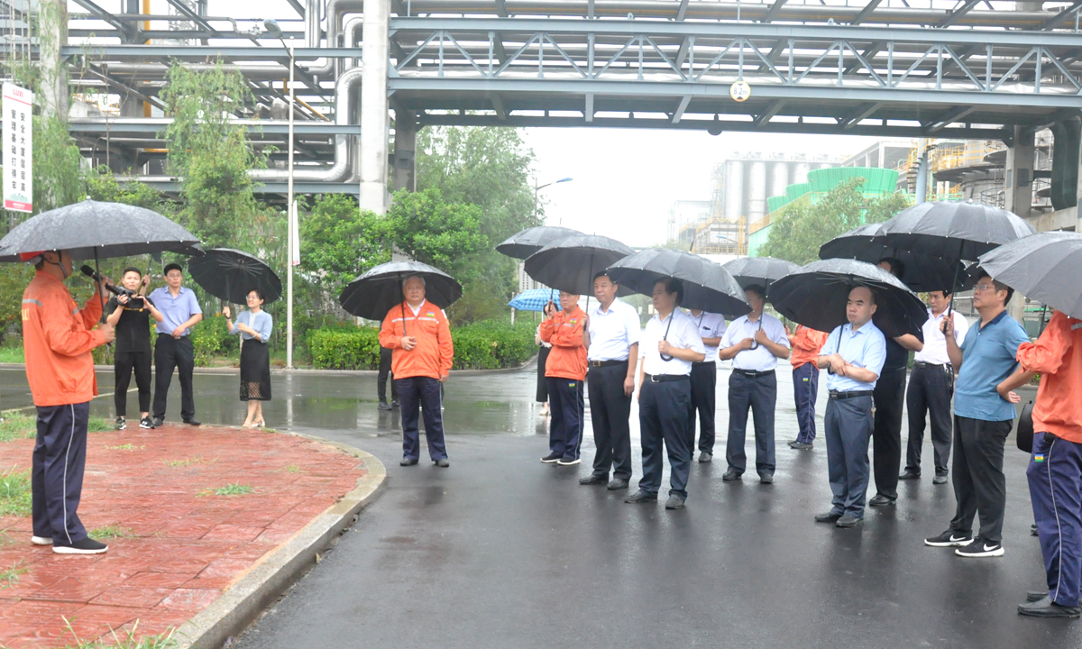 領導一行首先深入到己內酰胺項目、聚碳酸酯項目建設現場和高端化工裝備制作廠房進行了實地落實,各項目建設負責人分別介紹了項目建設進展情況和產品制作情況。