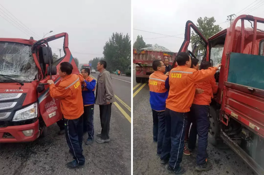 10月10日8時40分,在距黃河大橋500米處發生交通事故:一輛臨沂牌照的小貨車與聊城半掛追尾,貨車司機被困駕駛室內,司機的女兒圍著駕駛室直跺腳,當時的情況萬分緊急。魯西集團平陰魯西裝備公司的龐汝金、王甲勝、侯斌、趙昊忠和司機于波駕車去集團送貨途經車禍現場,五名員工立即下車一邊救助傷員,一邊維護交通秩序,受到過路司機和交警的稱贊。