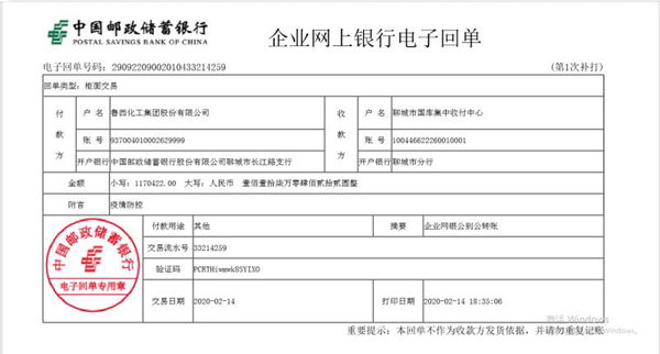 疫情就是命令,防控就是責任。捐款倡議發布后大家積極參與,踴躍捐款,許多干部員工主動多捐,奉獻愛心,以實際行動支持疫情阻擊戰,短短一天時間,集團干部職工共計捐款117萬元,并于2月14日18:30分匯入市國資委指定銀行賬號,支援一線的疫情防控工作。匯聚的顆顆愛心將涌動著奉獻的暖流,溫暖著人們齊心協力、共克時艱。