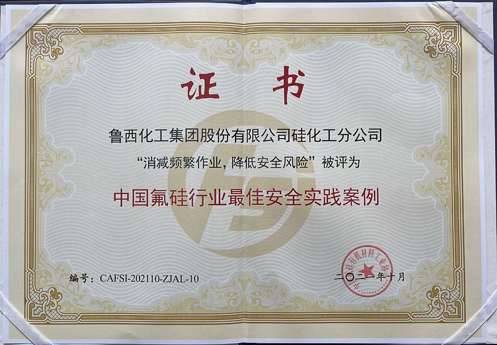 魯西集團(tuán)有機(jī)硅事業(yè)部王長明、氟材料事業(yè)部朱好言入選中國氟硅行業(yè)“安全衛(wèi)士”名單,魯西化工集團(tuán)股份有限公司硅化工分公司“消減頻繁作業(yè),降低安全風(fēng)險”作為案例入選中國氟硅行業(yè)“最佳安全實(shí)踐案例”。