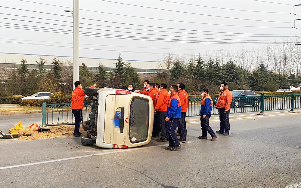 12月20日,魯西集團(tuán)下屬單位第七工程事業(yè)部門口就發(fā)生一樁驚悚而又讓人感動的事件。此時臨近中午,正值員工就餐時間,只聽“咣”的一聲巨響,一輛面包車疾馳撞向了道路隔離墩,車輛瞬間發(fā)生側(cè)翻。此時門衛(wèi)執(zhí)勤人員魏慶闊發(fā)現(xiàn)情況后,第一時間召集了準(zhǔn)備就餐的干部、員工十余人趕赴車禍現(xiàn)場,迅速打開主駕駛車門,此時司機(jī)因受到驚嚇還未緩過神來,身體被安全帶和車座卡住,前來營救的員工協(xié)助司機(jī)解除障礙,并確認(rèn)司機(jī)意識和身體狀況后,及時將司機(jī)從側(cè)翻車輛內(nèi)救出。此時正值中午下班高峰期,如果當(dāng)時不能及時將司機(jī)救出,一旦發(fā)生其他車輛追尾,將釀成更加嚴(yán)重的后果。事后司機(jī)對公司見義勇為的行為既感動又感謝,并向參與救援的魯西員工深深地鞠躬致謝。