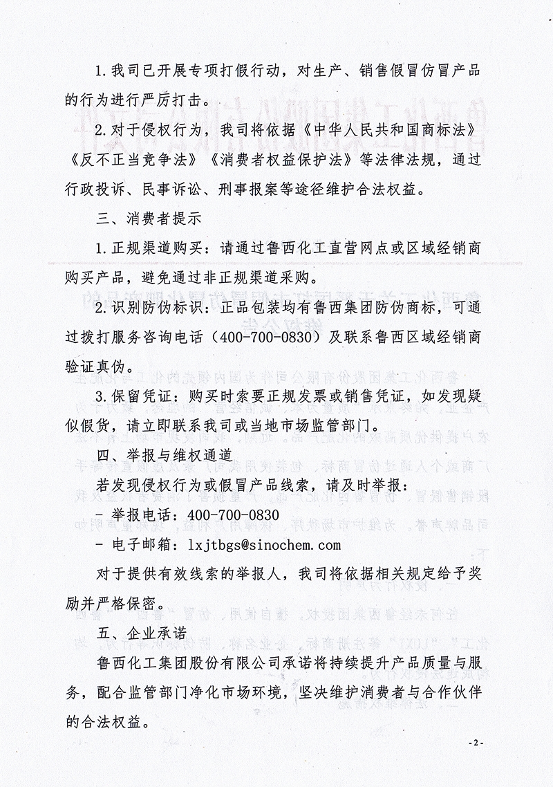 魯西化工關(guān)于嚴厲打擊假冒仿冒化肥產(chǎn)品的維權(quán)公告