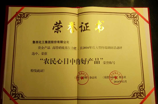 峰會開幕后便公布了萬眾注目的“農(nóng)民心目中的好產(chǎn)品”獲獎品牌產(chǎn)品名單。魯西集團(tuán)生產(chǎn)的高塔硝硫基復(fù)合肥以較高的網(wǎng)絡(luò)人氣和農(nóng)戶滿意度再次榮獲“農(nóng)民心目中的好產(chǎn)品”榮譽稱號。
