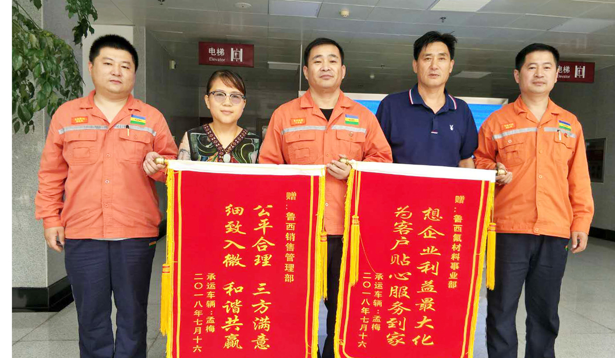 7月30日,東阿明鑫物流公司車輛負責人王長義、孟梅來到魯西集團,激動地將印有“公平合理 三方滿意 細致入微 和諧共贏”、“想企業(yè)利益最大化 為客戶貼心服務(wù)到家”字樣的兩面錦旗送到銷售管理部物流管理人員李登旭和氟材料事業(yè)部銷售經(jīng)理楊先旗手中,連聲感謝。并向記者講述了一則魯西集團員工公平公正妥善處理虧噸事件的故事。