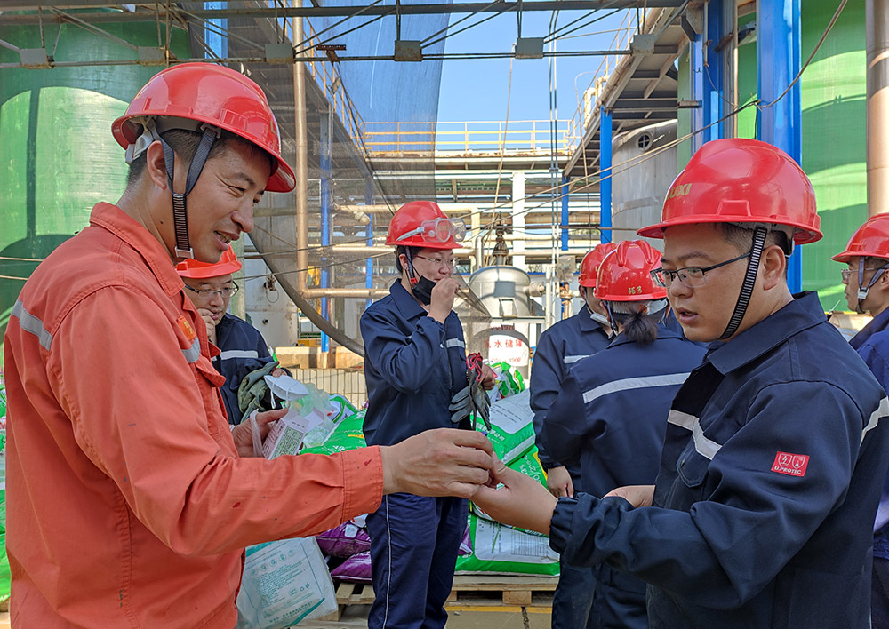 “張主任,張主任,過來看一下……”檢修期間,對講機里總能聽見工友們這樣喊,黨員干部張景堂是氯磺酸車間工藝技術上的大拿,有什么問題,找他準能及時解決。為了大修圓滿完成,他可是做了充分準備。前期停車方案的編寫,他做足了功課。停車時,他胸有成竹的指揮,氯磺酸單元、制酸單元安全環保停車。在停車置換期間,他帶領現場操作人員關閥門,加盲板,車間嚴格按節點有序交出檢修。